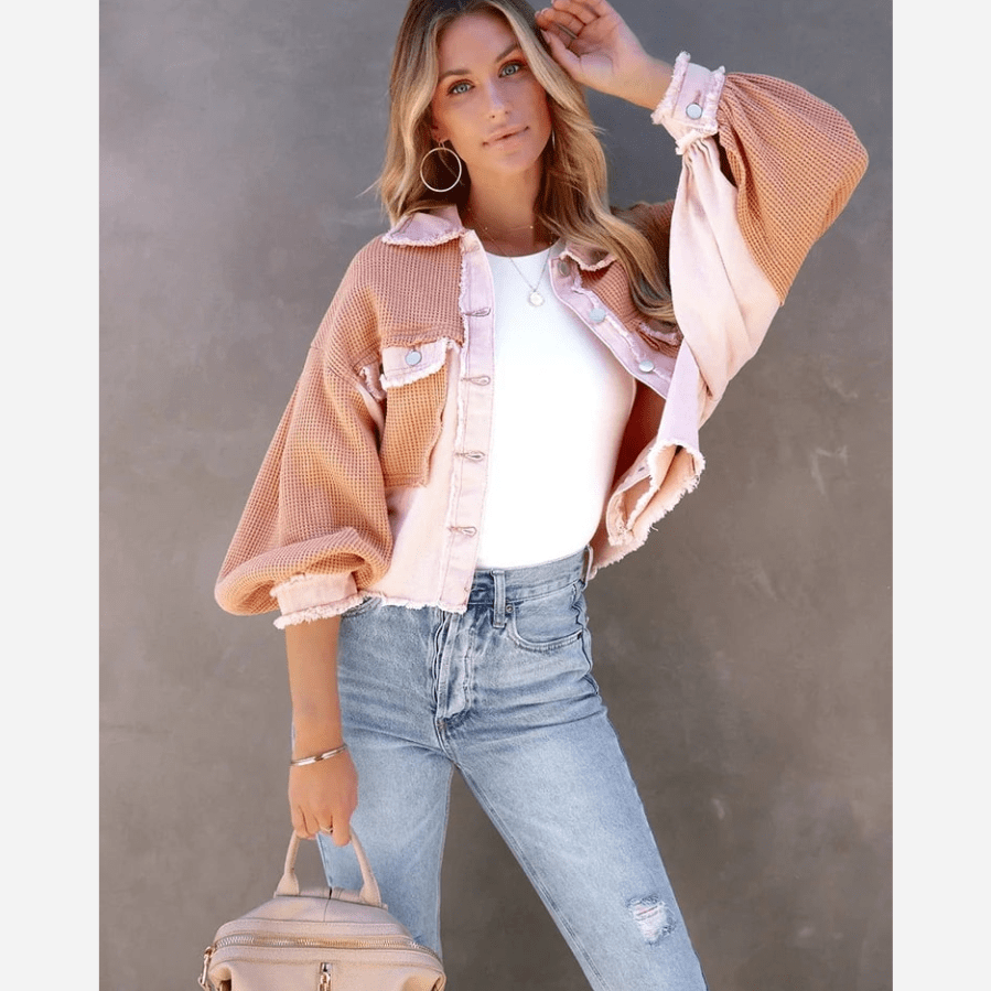 Bohemian Long Sleeve Leopard Print Denim Jacket