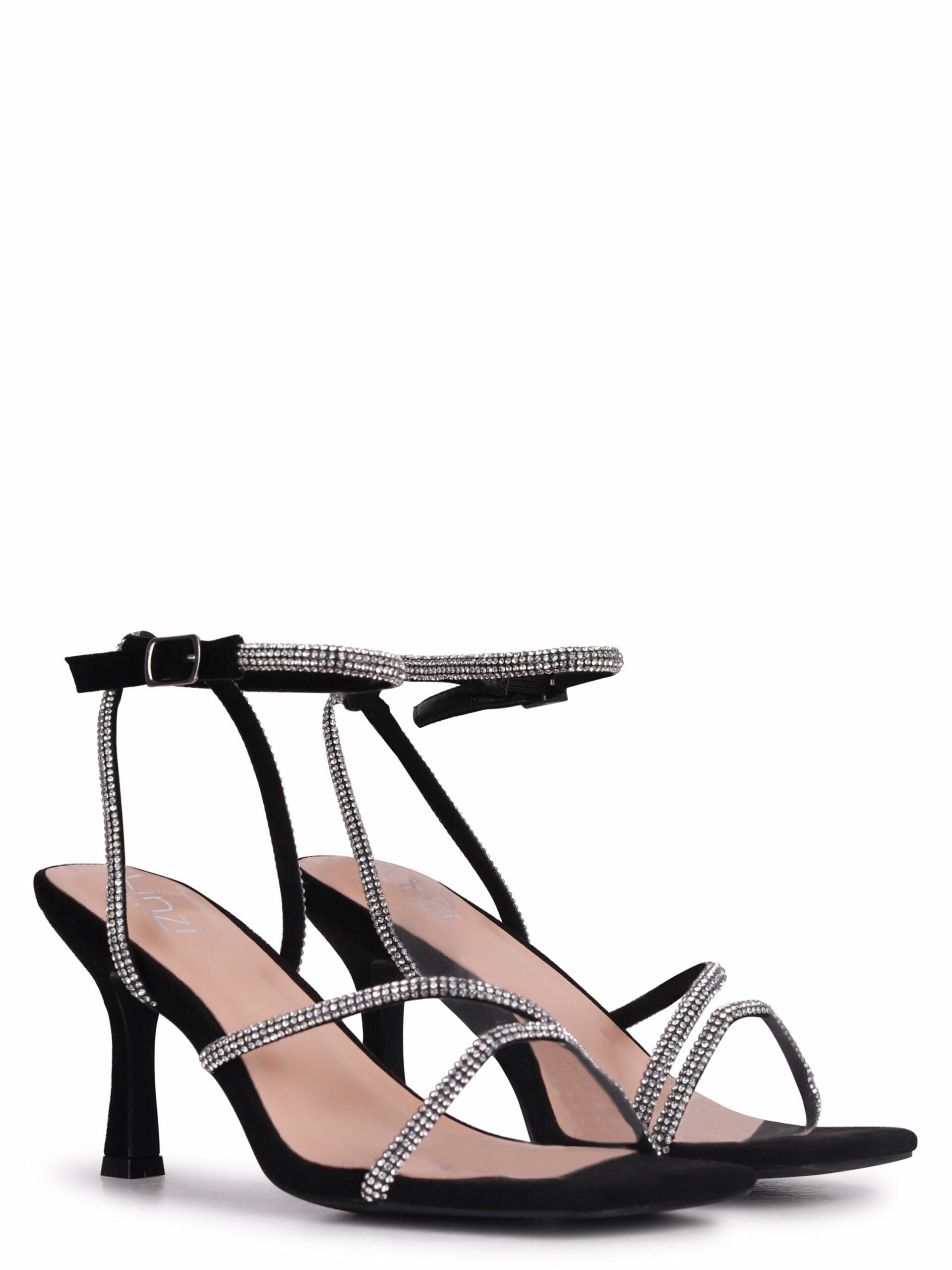 Our Linzi wide fit range is designed to let you show off your style in supreme comfort. Crafted from a soft faux suede, these elegant heeled sandals feature a wrap-around diamante ankle strap and an 8 cm heel.
