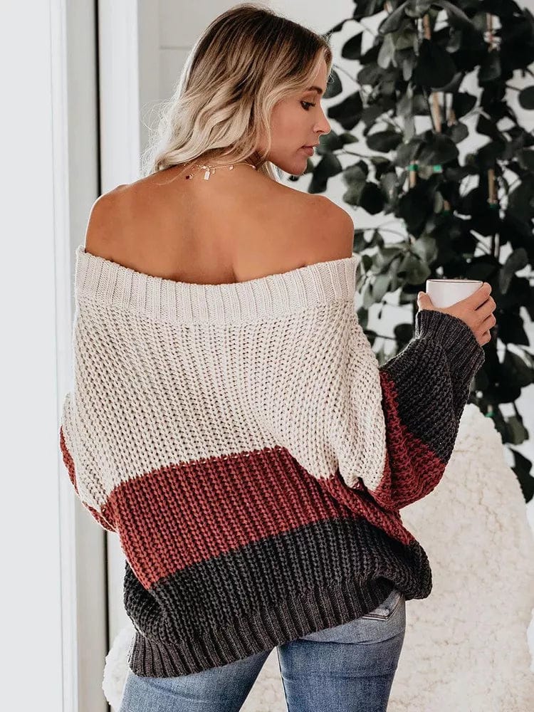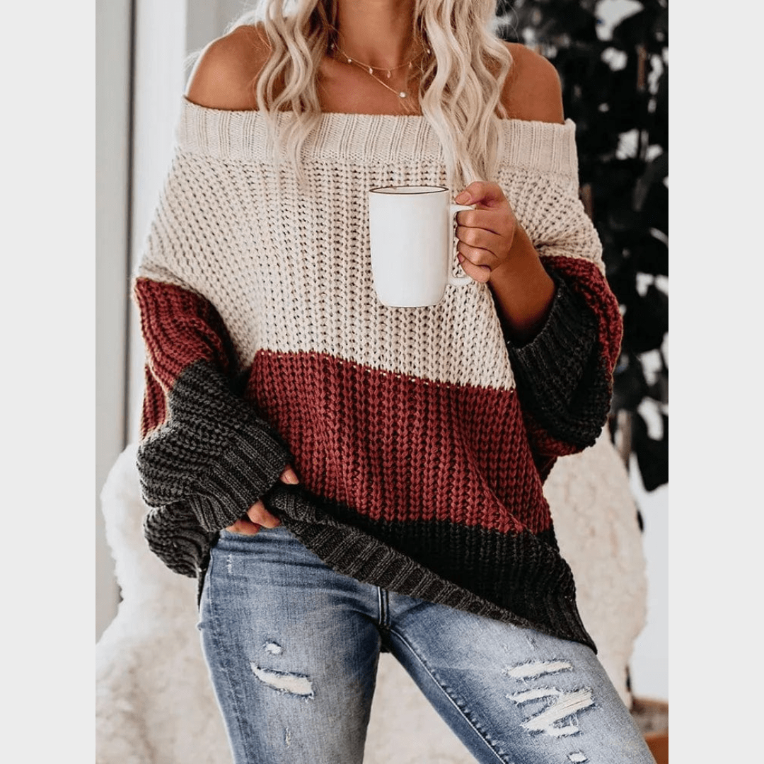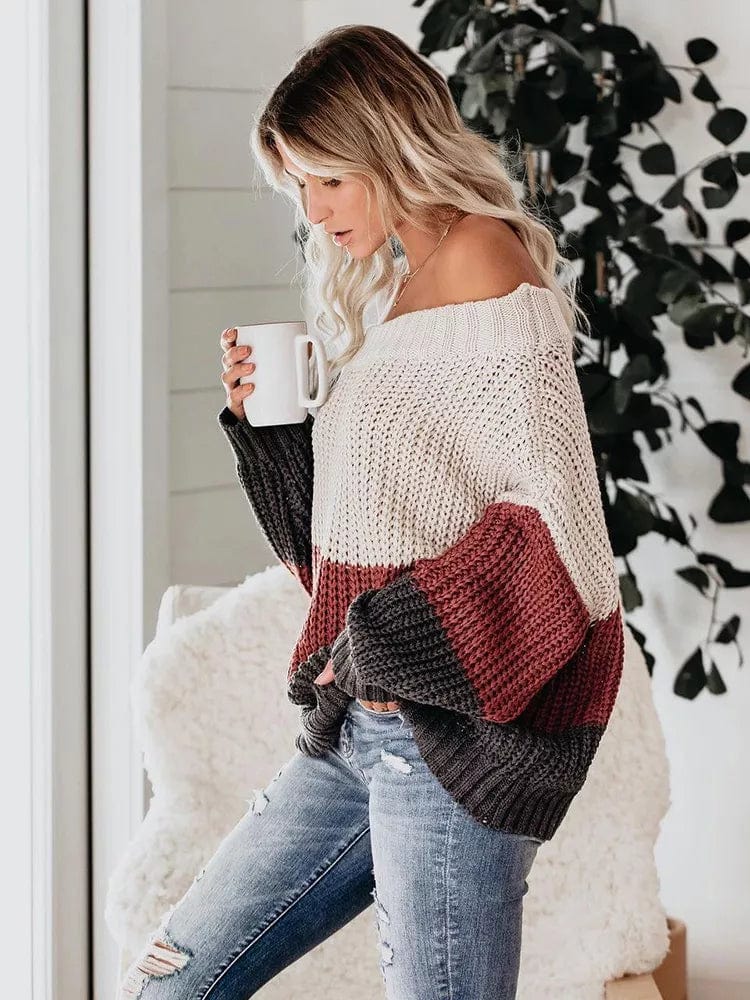Make your coffee date, winter bonfires, and hangouts even more exciting with our large striped bohemian sweater. With an off-shoulder design, baggy sleeves, and large stripes in a stunning color combination, you’ll look like a model on the go.